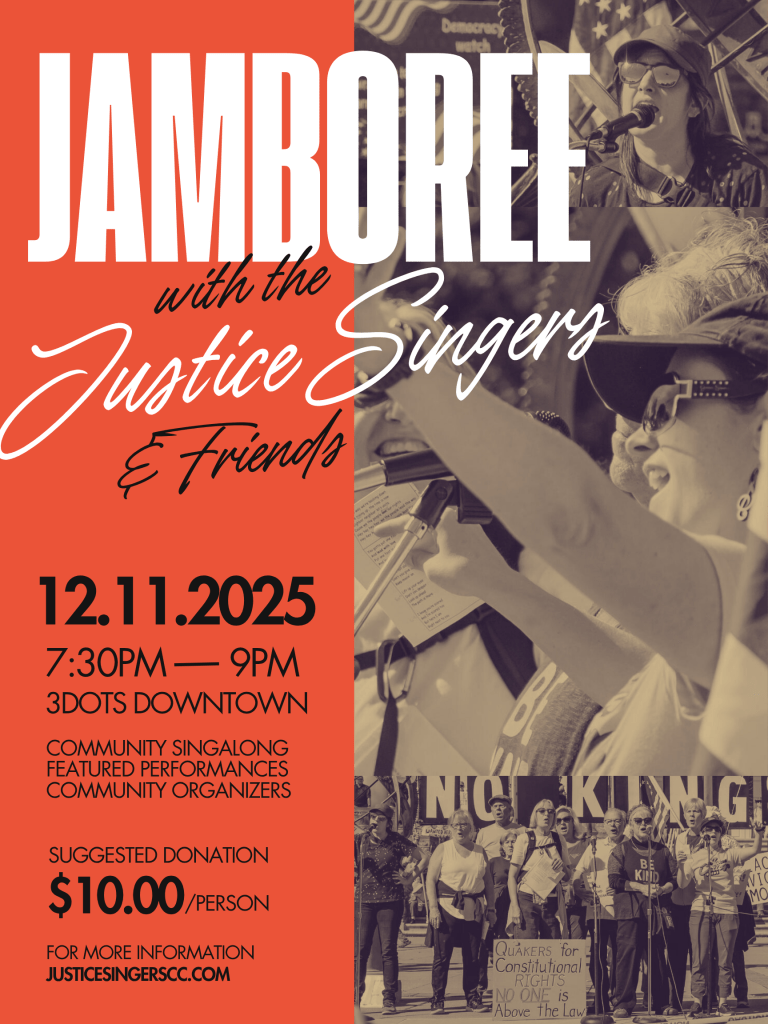 This community singalong will feature special performances by our song circle members and local musicians, and community organizations will be on hand to share info about how you can make a difference for democracy in the new year.